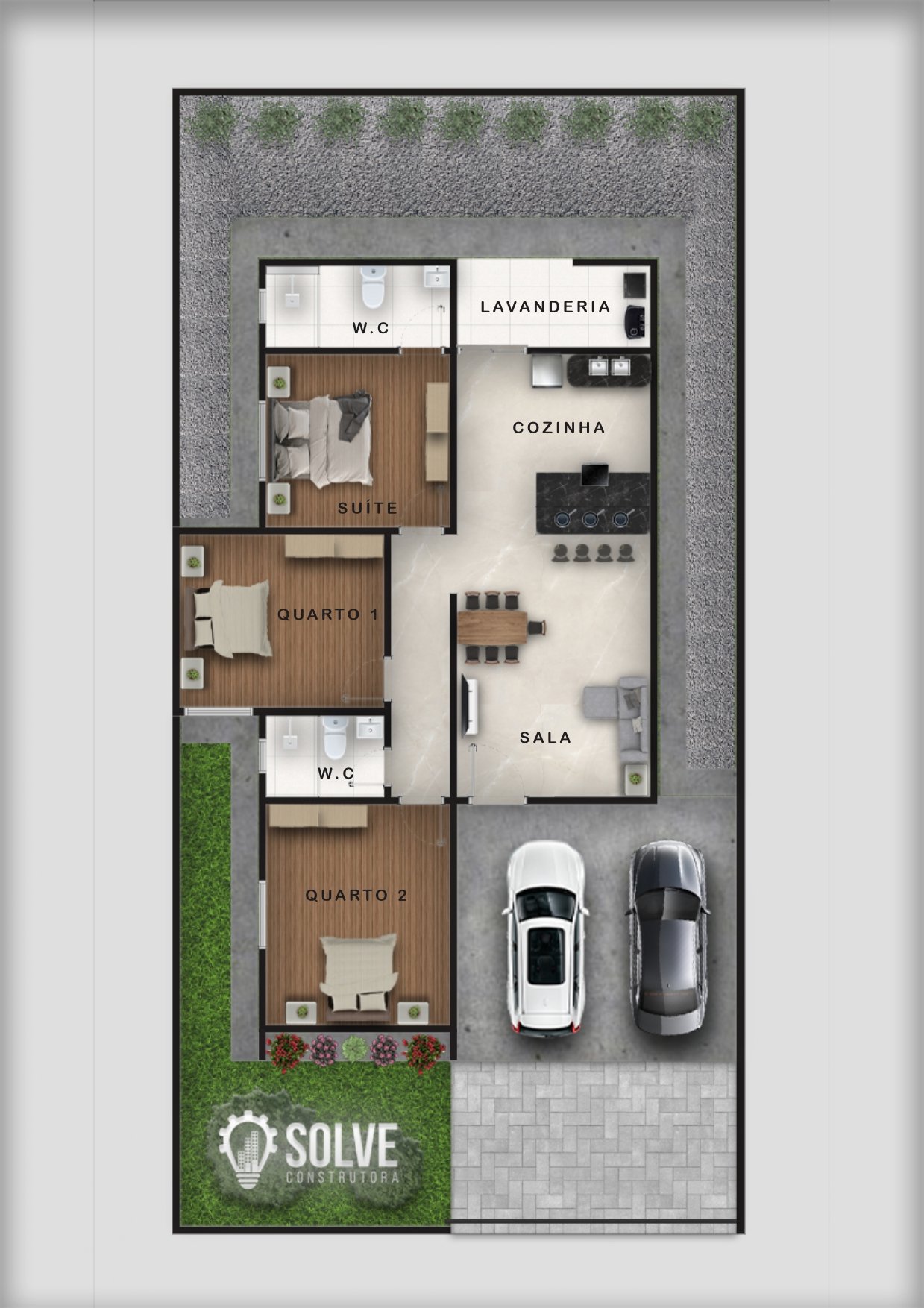• Área total: 200m² construídos em um terreno generoso de 500m², proporcionando espaço de sobra.